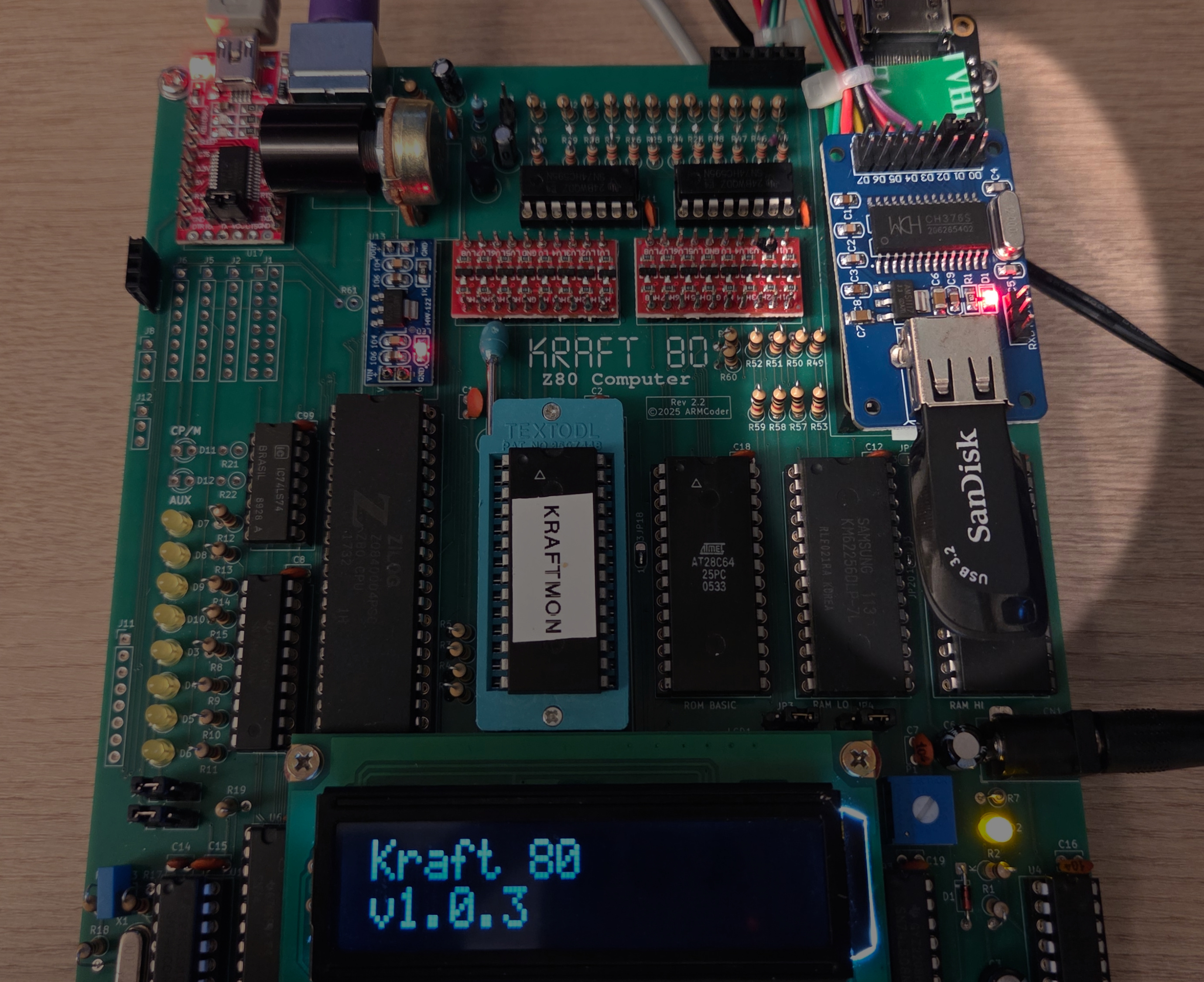 O KRAFT 80 é um computador baseado na CPU Z80 que eu construí para matar a minha nostalgia dos velhos tempos de clones do ZX81, computadores MSX e alguns trabalhos profissionais em que usei o Z80 em alguns projetos embarcados.
